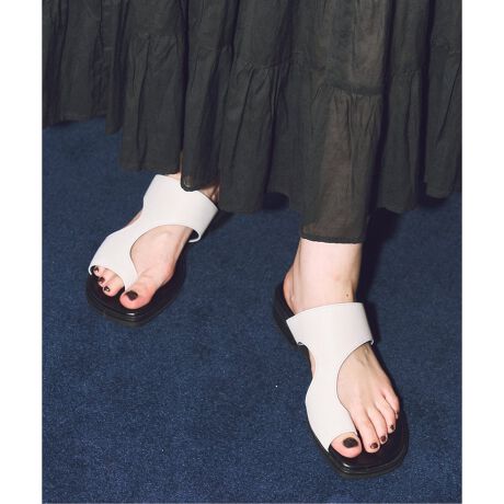 左右アシンメトリーなカッティングデザインを施し、シンプルながらもモードな印象で履けるトングサンダル。