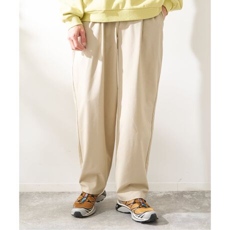 ストンと落ちるきれいなラインが特徴のワイドテーパードパンツ。
