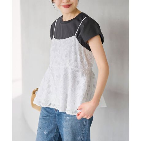 立体感のあるシアー素材に、部分的なジャガードをあしらった表情豊かなキャミソール。