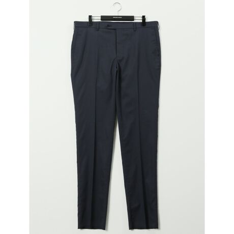 キチンと見えするルックスと楽ちんな穿き心地を兼ね備えた、ノータックのテーパードパンツです。ウエストストレッチで着脱もスムーズ、着席時も窮屈感がありません。センタープレス加工、フロントファスナー&ボタン、ベルト通し付き、前後ポケット付き、裾部分は未加工です。