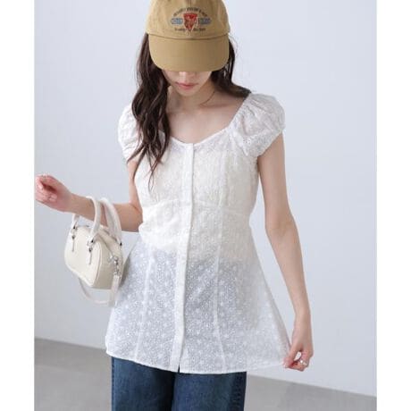 繊細なコットンレース素材を使用した軽やかで女性らしいチュニックブラウス。程よい透け感で甘さを抑え、品よく仕上げた一枚です。ウエスト切り替えや袖ギャザーで体のラインを拾いすぎず、自然なスタイルアップを叶えます。前開きデザインで羽織りとしても着回し可能。後ろリボン付き。肌寒い時期はロンTインナーをレイヤードするのもおすすめ。デニムパンツやカーゴパンツと合わせて大人カジュアルにも、ロングスカートにベルトを加えるとメリハリのある着こなしも楽しめます。※モデルの着用画像の場合、光の当たり具合により、実際の色味と異なって見えることがございます。色味は、商品単体の画像をご参照ください。