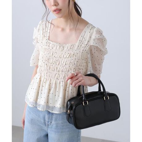 人気アイテムが新色ピンクとネイビーを加えて登場!程よいシアーシフォンにランダフロッキードットを施したブラウス。フロントシャーリングとペプラムシルエットで柔らかな印象にし、スクエアネックがデコルテをキレイに見せてくれます。シアー感のあるパフスリーブもポイント。身頃は裏地付きで透けを気にしないで着用いただけます。デニムやスラックスとのコーディネートがおすすめです。※モデルの着用画像の場合、光の当たり具合により、実際の色味と異なって見えることがございます。色味は、商品単体の画像をご参照ください。