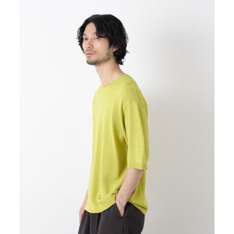 奥行きのある表情が魅力のニットTシャツ。リネンライクなドライタッチ素材が、さらりとした清涼感と程よい落ち感を併せ持ち、肌離れの良い快適な着心地を提供。上品で洗練された見え方と通気性の良さを両立した、春夏シーズンを通して活躍する一枚です。