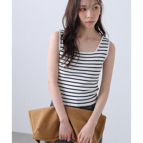総針スクエアネックタンクニット
