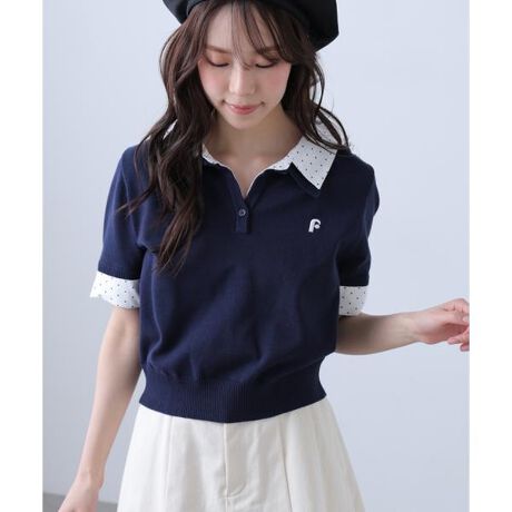 綿タッチのニットポロにシャツをレイヤードしたようなドッキングデザイントップス。トレンドのレイヤードスタイリングが1枚着るだけで完成します。左胸にはブランドロゴの頭文字を取った「F」刺しゅう入りでプレッピーな雰囲気に。グレーには無地サックスシャツ、ネイビーにはサックスストライプシャツ合わせで雰囲気の違うカラー展開です。ミニスカート合わせでヘルシーなプレッピースタイリングが今年らしくておすすめ。袖のカフスは伸ばしたままでも折り返しても着ていただけます。※モデルの着用画像の場合、光の当たり具合により、実際の色味と異なって見えることがございます。色味は、商品単体の画像をご参照ください。