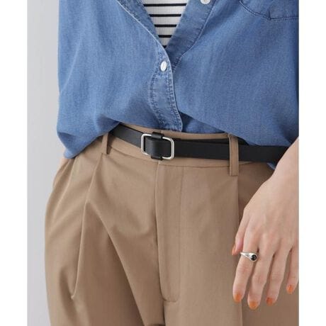 太すぎず細すぎない2cm幅で、程よい存在感と使いやすさを兼ね備えたベルト。シンプルなスクエア型バックルが、スタイリングにさりげないアクセントをプラス。デニムやチノパンなどのカジュアルボトムにはもちろん、きれいめスタイルにも取り入れやすいデザインです。