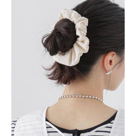春夏シーズンらしいリネンライク素材を使用したシュシュ。結ぶだけでシーズン感を演出でき、クシュっとした質感と程よいボリューム感が、簡単にヘアアレンジを楽しめるポイント。サッと付けるだけでこなれた雰囲気に仕上がり、リラックス感あるデザインでデイリー使いにもぴったりのアイテムです。
