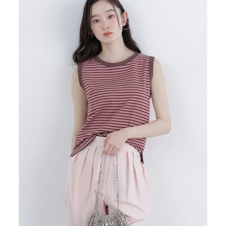 一枚でも着やすいノースリーブのボーダーカットソー。襟と袖口は無地配色でメリハリを出し、両サイド裾スリット入りで抜け感と動きやすさをプラス。インでもアウトでもバランスよく決まる着丈です。<素材>しっかりしたマルチボーダーカットソー素材を使用しています。<詳細>仕様・開閉なし裏地・なし透け感・なし / 光沢・なし / 伸縮性・あり生地の厚さ・普通※モデルの着用画像の場合、光の当たり具合により、実際の色味と異なって見えることがございます。色味は、商品単体の画像をご参照ください。