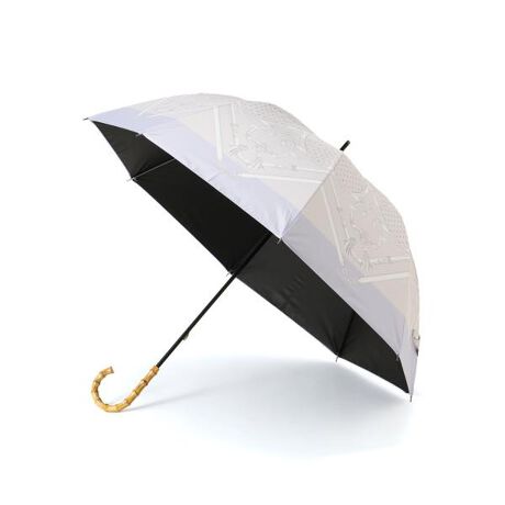 スカーフ柄がクラシカルなアクセントになる晴雨兼用の長傘です。バンブー風ハンドルデザインが女性らしさを演出します。ONにもOFFスタイルにも合わせやすい3色展開です。