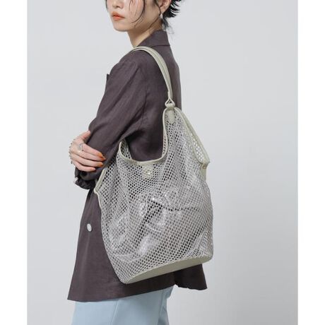 メッシュ素材を使用した軽やかな印象のトートバッグ。抜け感のある編み地がシーズンムードを高め、シンプルなスタイリングにさりげないアクセントをプラスしてくれます。