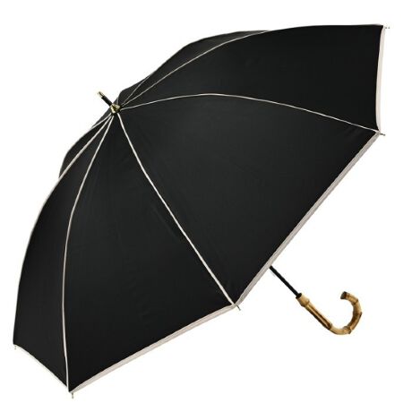 [型番:2511]バイカラーのパイピングデザインに、バンブーハンドルを合わせ上品な傘に仕上げました。親骨に沿ったパイピングが傘の形を美しく引き立て、シンプルでシックな印象を与えてくれます。裏側のポリウレタン加工の色はブラックになっています。ダークな色は光を吸収し日陰を作る効果があります。カジュアルに持ててパイピングが映える一級遮光晴雨兼用日長傘
