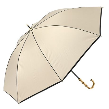 [型番:2511]バイカラーのパイピングデザインに、バンブーハンドルを合わせ上品な傘に仕上げました。親骨に沿ったパイピングが傘の形を美しく引き立て、シンプルでシックな印象を与えてくれます。裏側のポリウレタン加工の色はブラックになっています。ダークな色は光を吸収し日陰を作る効果があります。カジュアルに持ててパイピングが映える一級遮光晴雨兼用日長傘
