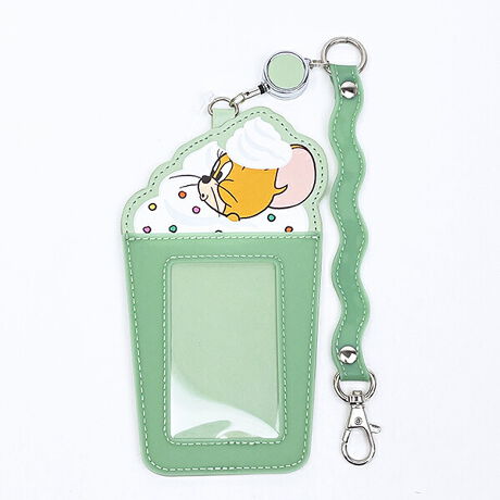 トムとジェリ―のメロンソーダのフローズンドリンクをイメージしたカードホルダーです。たっぷりのホイップクリームから顔を出したキャラクターのお顔がとってもキュート♪よく使うICカードを入れパスケースとして使用したり、トレカを入れて推し活アイテムにして使うのもおすすめ◎リール付きなので使い勝手も抜群です☆彡