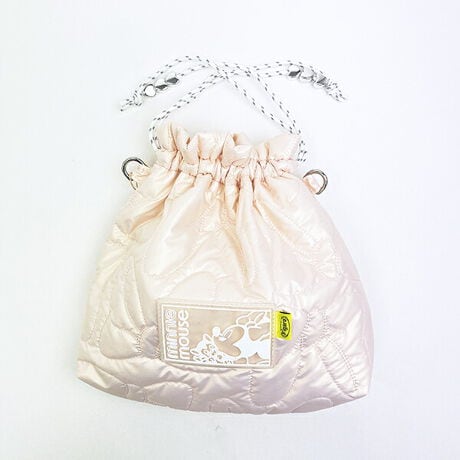 ミニーマウスのリボン型のキルティング生地がポイントの巾着型ポーチです。同色でステッチを施すことで、大人でも持ちやすい総柄デザインに♪お手持ちのショルダー紐を取り付けると、巾着バッグとしての使用も可能◎少しマチが付いているので、収納力も抜群♪デジカメや、小さめのお財布やポーチなども入るサイズ感がgoodです♪