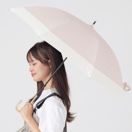 紫外線遮蔽率100%、UPF50+、遮光率100%、遮熱性効果のある一級遮光生地で強い日差しや暑さをしっかり遮ります。さらに、肌の深部に影響を与える近赤外線も100%遮断します。耐水圧18,000mm以上のはっ水・防水機能付きで、雨の日も安心。指や爪をはさみにくい「安全ろくろ(ストッパー)」を使用しているので、ボタン部分を押して開閉でき安心してお使いいただけます。開いた時に丸く綺麗に見える8本骨の長傘は使う人を美しく引き立てます。長傘の場合、傘を開閉する際も折りたたみタイプより、簡単に開閉出来るので便利です。※記載の紫外線遮蔽率(UVカット率)・UPF値・近赤外線遮蔽率・遮光率・耐水圧の値は、生地単体での測定値です。傘本体の性能を保証する数値ではなく、縫製部分などのUV加工が施されていない箇所も同様です