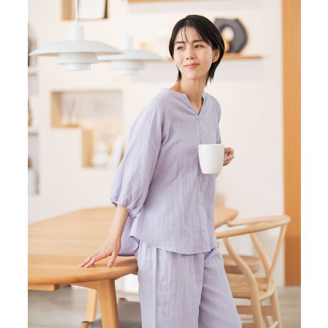 リラックスしたシルエットで肌触りのいいパジャマを着用する事でスリープセレモニーをより印象付けてくれるでしょう。〜ガーゼパジャマの特性〜