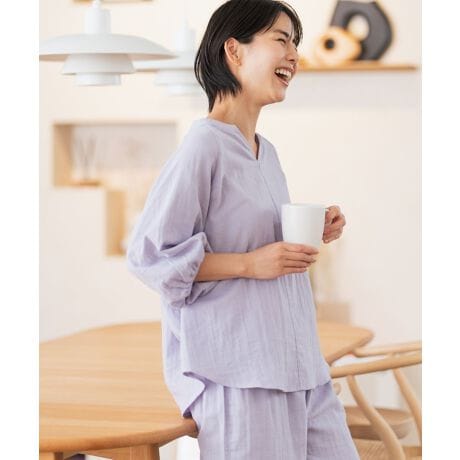 リラックスしたシルエットで肌触りのいいパジャマを着用する事でスリープセレモニーをより印象付けてくれるでしょう。〜ガーゼパジャマの特性〜