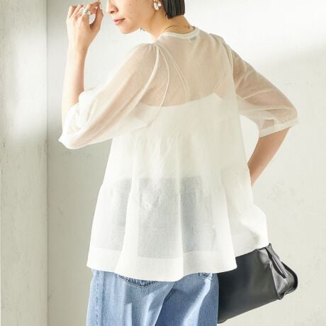 《予約》〈手洗い可能〉麻混 シアー ティアード ショート スリーブ プルオーバー