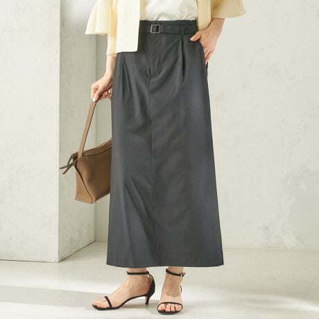 《予約》〈手洗い可能〉麻混 ベルト付 ウエストタック ナロー スカート
