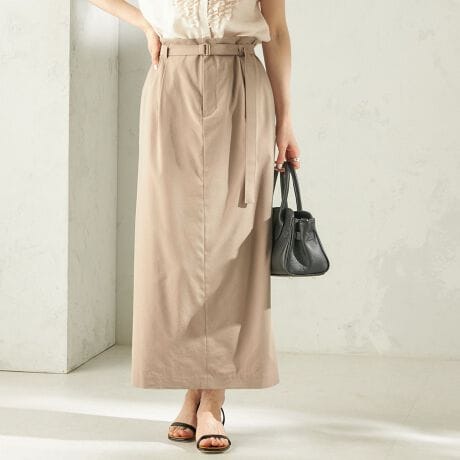 《予約》〈手洗い可能〉麻混 ベルト付 ウエストタック ナロー スカート