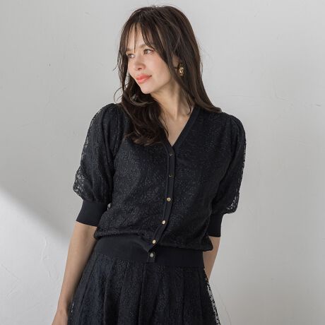 チュール素材に繊細で可憐なカスミソウ刺繍を施した素材とニットをレイヤードしたカーディガンです。