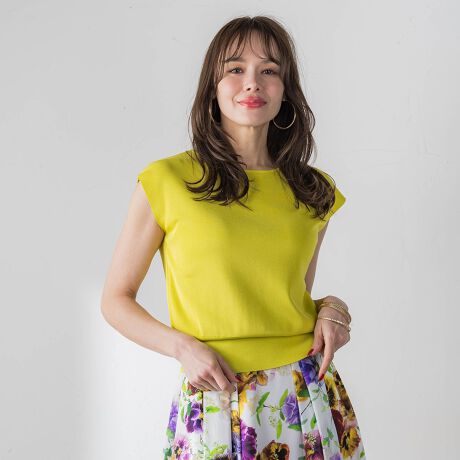 フレンチスリーブなので、気になる腕周りをおしゃれにカバーしてくれます。着るだけでこなれた印象になる、これからの季節に活躍する一枚です。