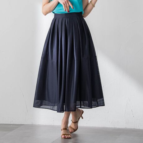 細かいチェック柄のラッセルレースを使用したタックフレアースカートです。