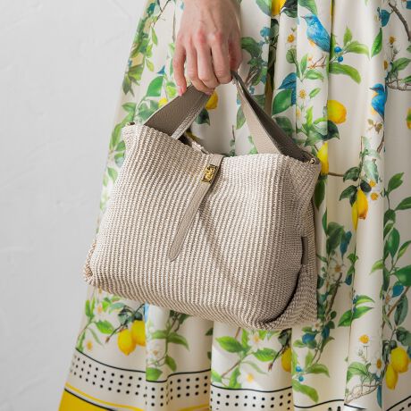 上品な風合いが魅力のラフィア調シートを使用したトートバッグ。