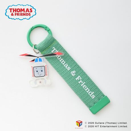 ロゴ入りテープに「きかんしゃトーマス」のアクリルモチーフをあしらったチャーム。
