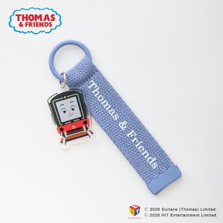 ロゴ入りテープに「きかんしゃトーマス」のアクリルモチーフをあしらったチャーム。