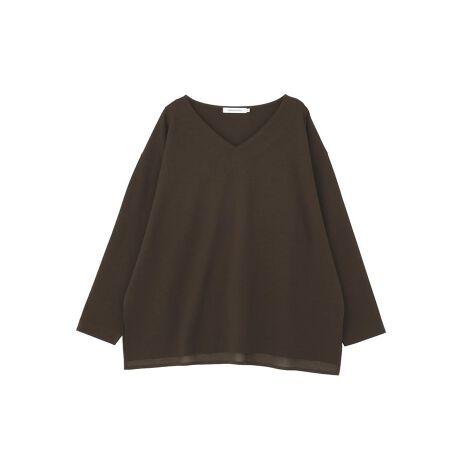 ※オフホワイトのみ3月下旬入荷予定です。<br/><br/>異素材使いで差がつく上品Vネックトップス顔まわりをすっきり見せてくれるVネックデザインが魅力の一枚です。ほどよい開き具合で上品さを保ちつつ、抜け感のある大人カジュアルな印象に仕上げてくれます。身頃にはなめらかでハリのあるポンチ素材を使用し、きれいなシルエットをキープします。裾には異素材を切り替え、さりげないアクセントをプラスしています。ゆったりとしたシルエットで体のラインを拾いにくく、リラックス感のある着心地です。パンツにもスカートにも合わせやすく、通勤からお出かけまで幅広いシーンで活躍します。シンプルながらもデザイン性のあるカットソーとして、着回し力の高いアイテムです。透け感[なし]