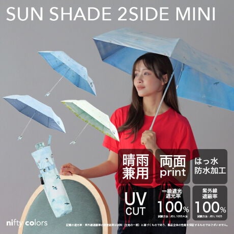 傘生地の外側と内側それぞれ異なるデザインをプリントした映え効果抜群の親骨50cmの晴雨兼用日傘の折りたたみ傘です。紫外線遮蔽率100%、UPF50+、遮光率100%、遮熱性効果のある一級遮光生地で強い日差しや暑さをしっかり遮ります。さらに、肌の深部に影響を与える近赤外線も100%遮断します。耐水圧17,000mm以上のはっ水・防水機能付きで、雨の日も安心。安全ろくろ仕様で開閉もスムーズです。折りたたみタイプはコンパクトになるので、使わない時にはバッグに収納でき携帯に便利です。※記載の紫外線遮蔽率(UVカット率)・UPF値・近赤外線遮蔽率・遮光率・耐水圧の値は、生地単体での測定値です。傘本体の性能を保証する数値ではなく、縫製部分などのUV加工が施されていない箇所も同様です。