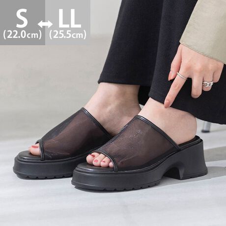 アッパーにトレンドのシアー生地を採用することで、厚底のボリューム感に絶妙な軽やかさと女性らしさをプラス!