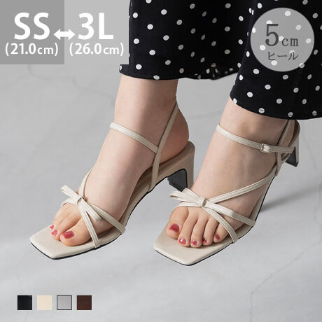 トレンドのリボンディテールをあしらった一足。甘くなりすぎないように華奢なストラップで作られているので大人の色香もプラス。