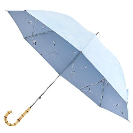 表面にはシマエナガが雪の降る中をおだんご状にみっちり集まっている可愛らしい姿がデザインされています。裏面は、雪降り積もる森の中で、シマエナガにぐるりと囲まれている情景が描かれています。雪の中にいるひんやりした雰囲気が楽しめます。高級感があるバンブー(天然竹)ハンドルが上品です。