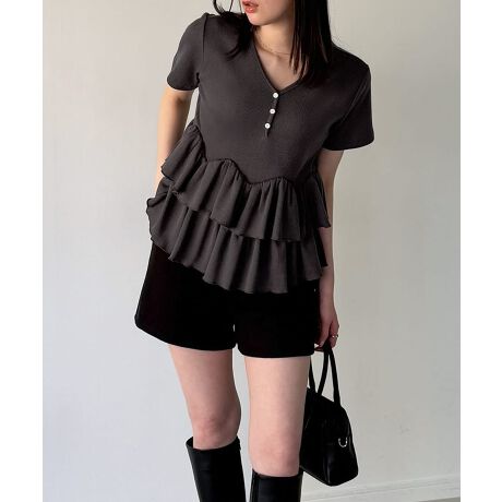 マルイウェブチャネル   /   ジュノア   /   トップス   /   その他トップス   /   Vネックフリルヘムリブカットソー