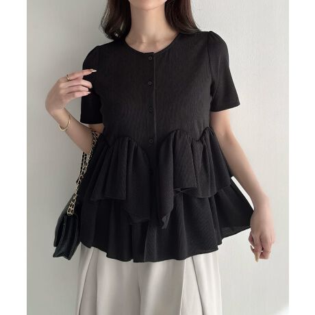 Meiru ランダムペプラム半袖カーディガン