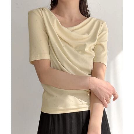 ラインストーン半袖ドレープトップス