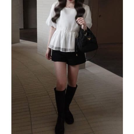 オーガンジーバックリボンペプラムブラウス