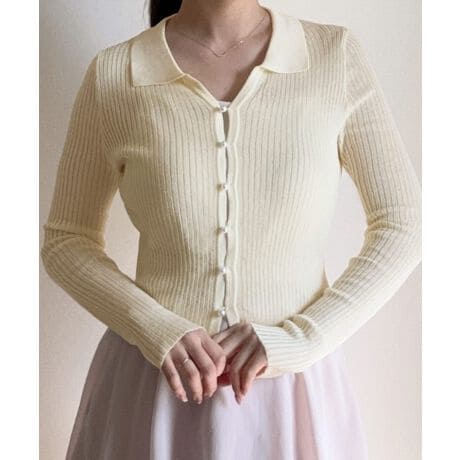 パールショート丈シアーニットカーディガン