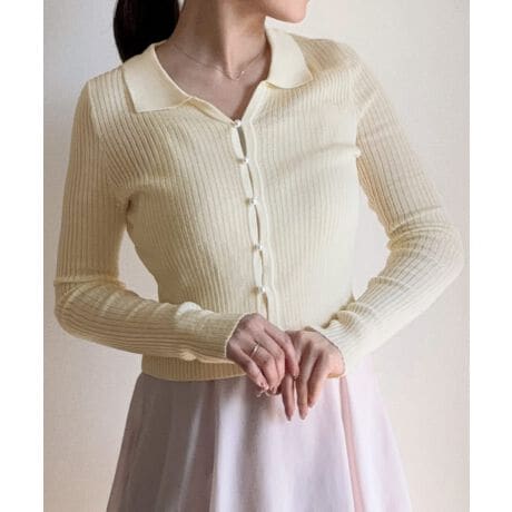パールショート丈シアーニットカーディガン