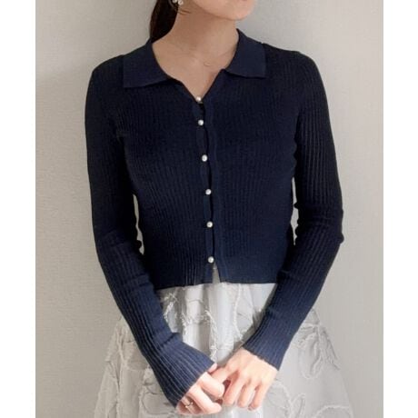 パールショート丈シアーニットカーディガン
