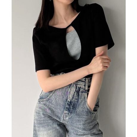 レイヤード風半袖トップス