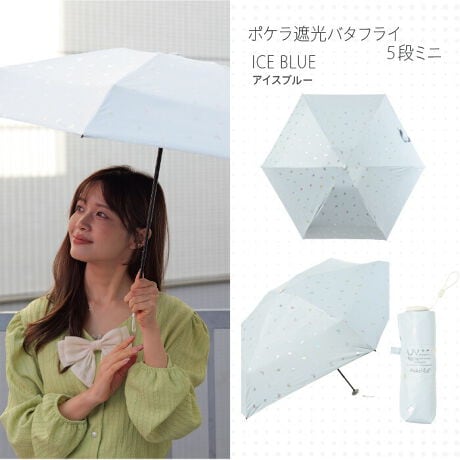 軽くて小さい、ポケットサイズの可愛い「Pokellaポケラ」に、遮光率100%、紫外線遮蔽率100%、UPF50+、遮熱性効果のある一級遮光生地を使用したタイプが加わりました。雨の日にも安心なはっ水・防水効果もあり、晴雨兼用日傘としてオールシーズンお使いいただけます。手元部分をカチッと傘骨に押し込むとしっかりロックされ、中棒が伸びてくるのを防ぎます。指や爪をはさみにくい「安全ろくろ(ストッパー)」を使用しているので、ボタン部分を押して開閉でき安心してお使いいただけます。小さめのバッグやポケットにも入るコンパクトさが魅力です。