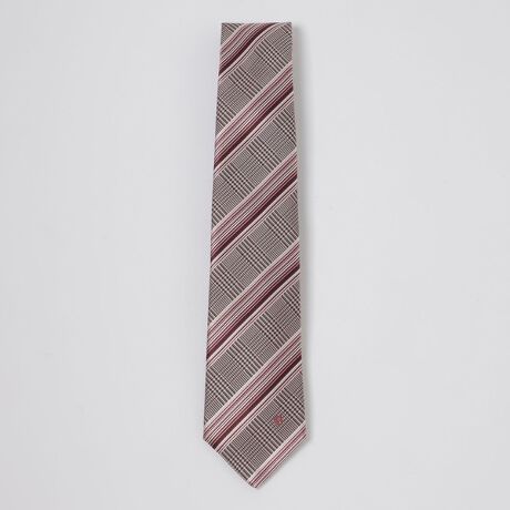 [型番:51825746__]【グレンチェックとレジメンタルを組み合わせた個性的なタイ】シルク100%を使用したグレンチェックタイ。鮮やかなペーンとグレンチェックを組み合わせることでシックながらも爽やかな印象を与えます。裏地にはジャカードで表現したブランドロゴを配置し、細部までこだわった逸品です。※掲載写真と柄の出方が異なる場合がございます。
