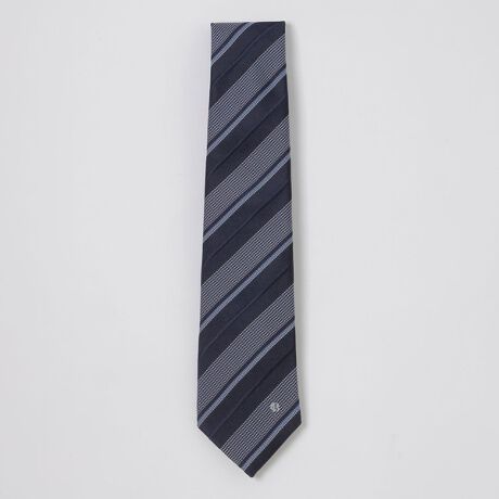 [型番:51825741__]【アクセントのカラーペーンが入ったレジメンタルタイ】シルク100%を使用したレジメンタルタイ。カラーペーンと組織感のあるレジメンタルを組み合わせる事で、モダンな印象に仕上げています。シンプルなレジメンタルタイのため、ビジネスシーンで重宝いただけます。裏地にはジャカードで表現したブランドロゴを配置し、細部までこだわった逸品です。※掲載写真と柄の出方が異なる場合がございます。