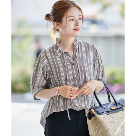ご好評につき、ボイルストライプフリル襟ブラウスが追加決定!