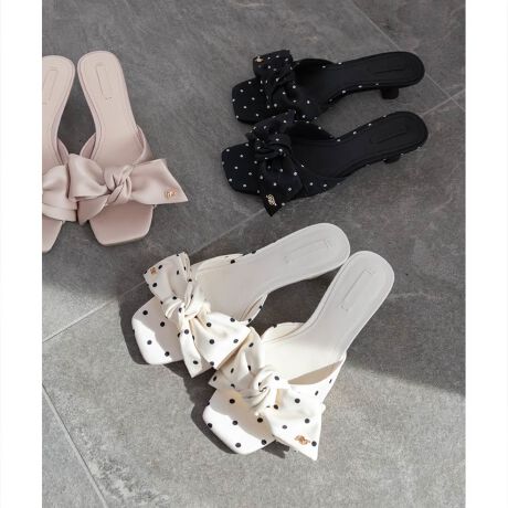 足元に華を添える、甘さと上品さを両立した大人のリボンミュールサンダル。