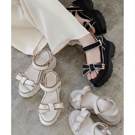 パイピングリボンが映えるボリュームソールスポーツサンダル。