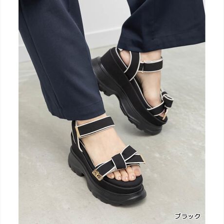 パイピングリボンが映えるボリュームソールスポーツサンダル。
